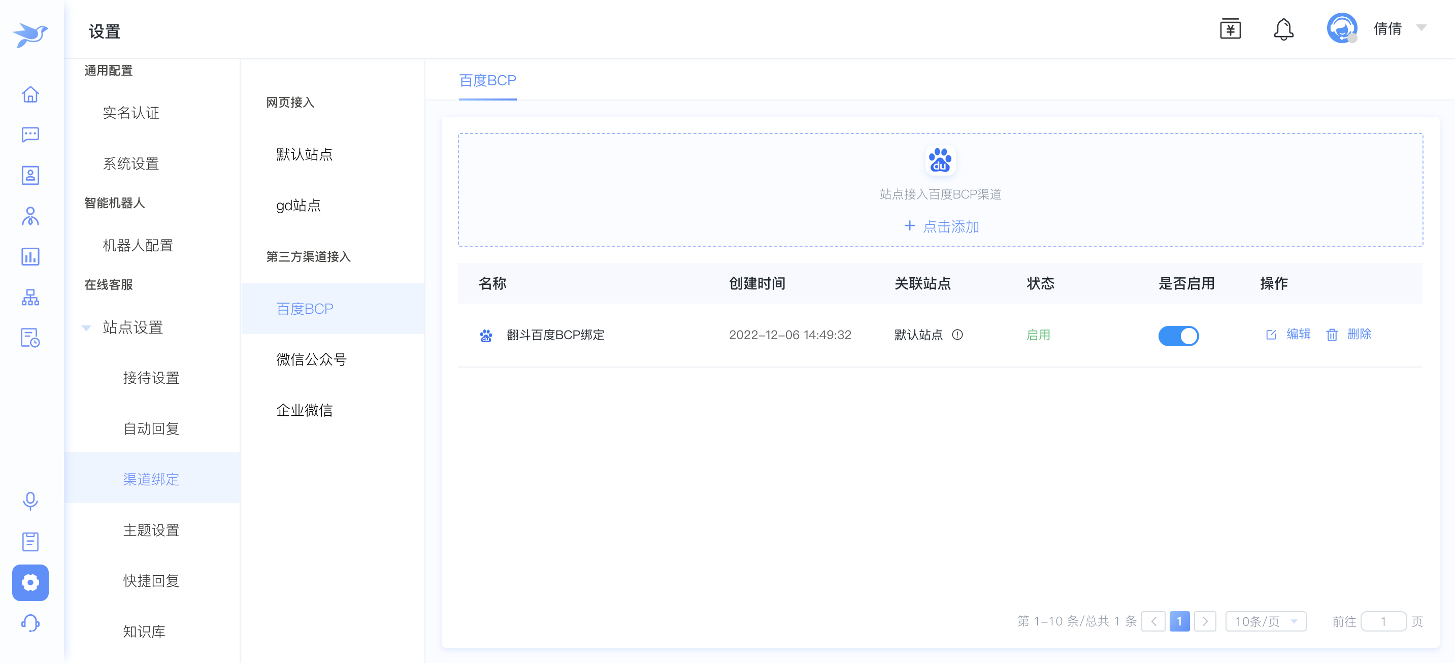 1.1.选择渠道绑定,点击百度bcp