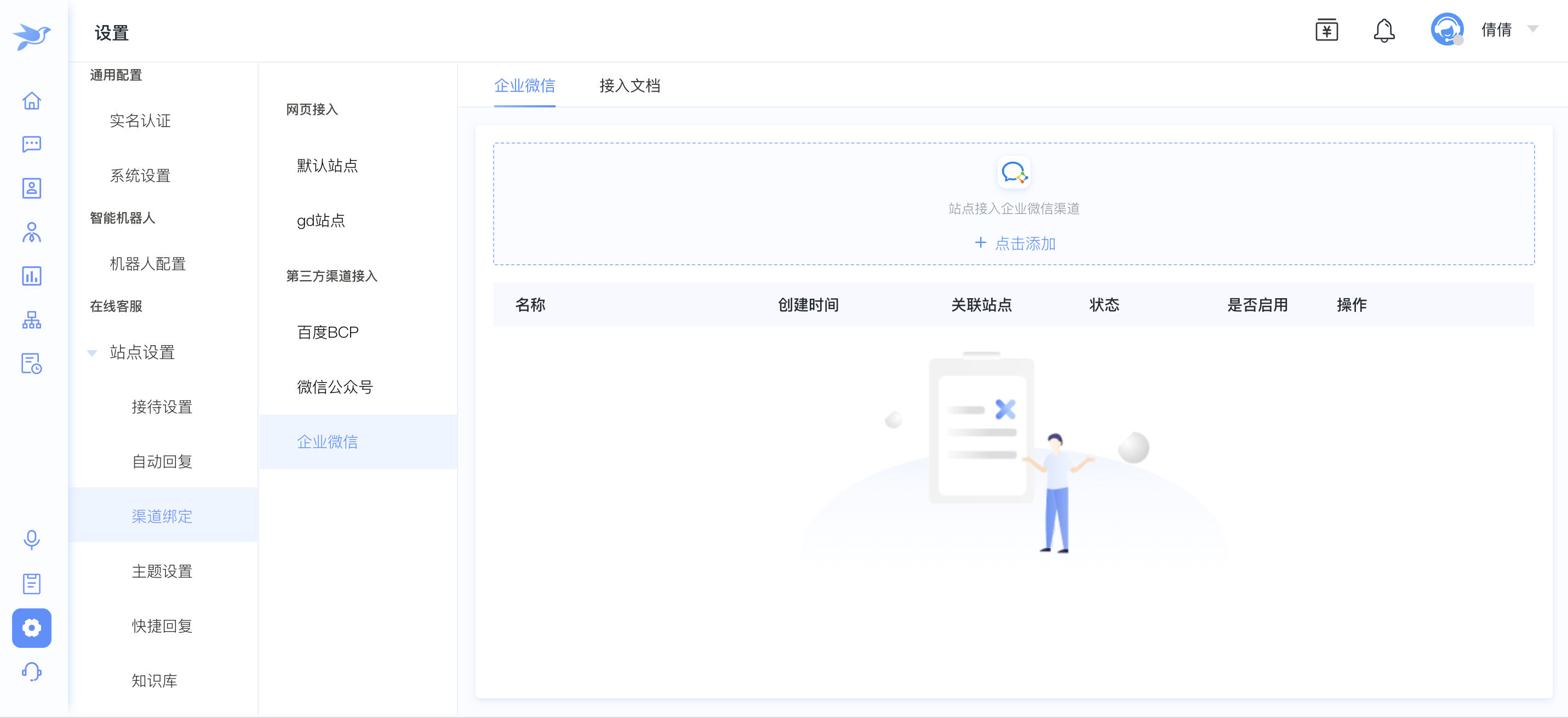 3.1.选择渠道绑定,点击企业微信