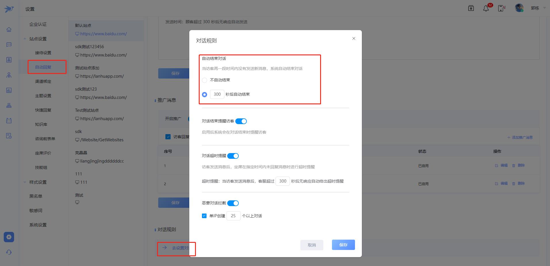 1.1.点击自动回复,选中会话中,滚动页面止最底部点击去设置对话规则