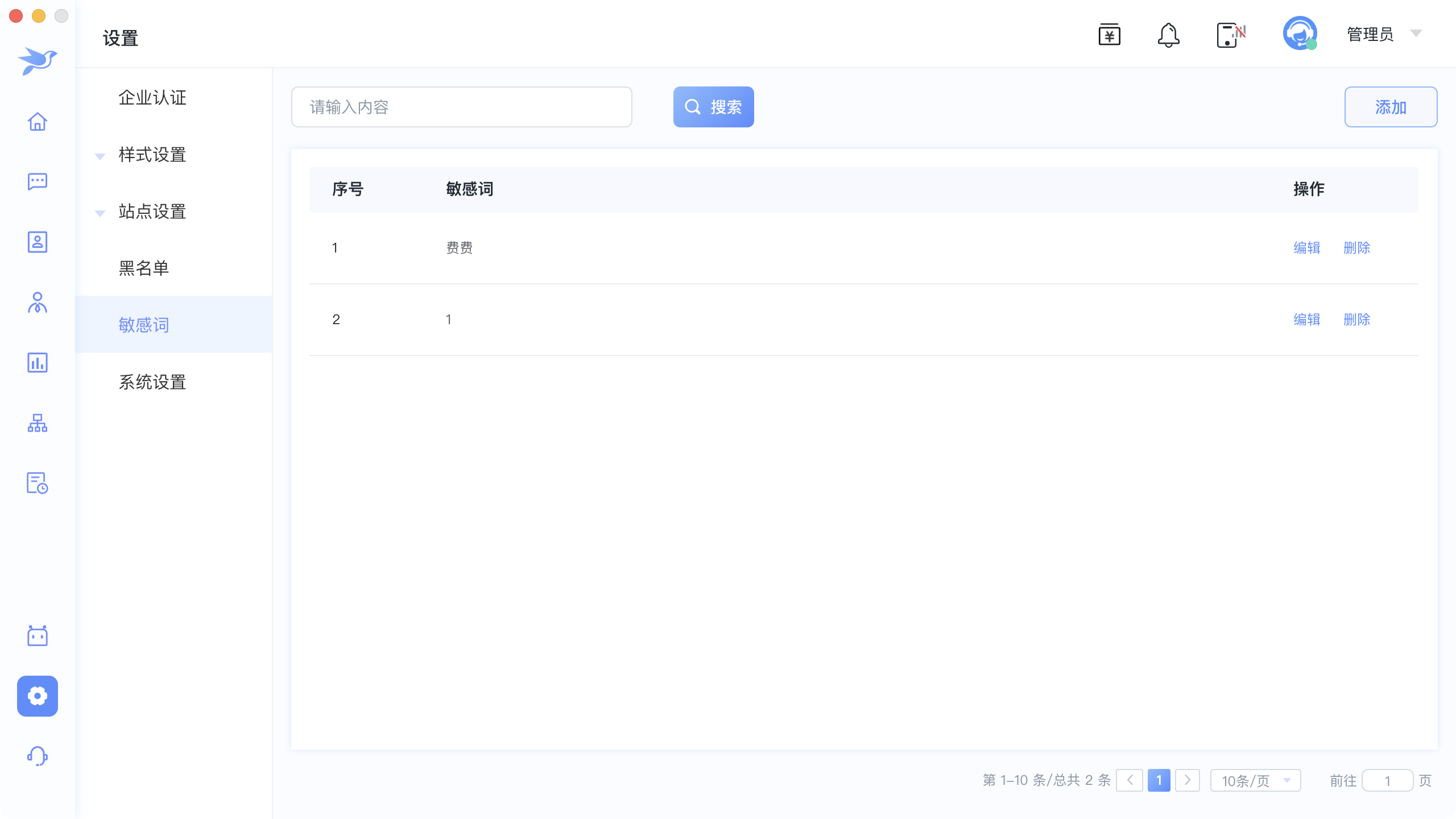 添加敏感词,添加的敏感词会在聊天过程中以*号代替