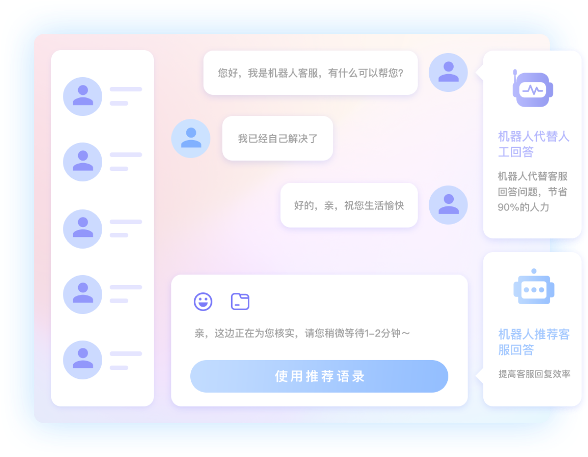 客户信息获取、会话预知、快捷回复、知识库快捷查询等,提升客服效率